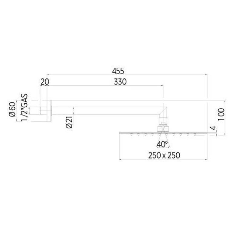 • Soffione Tetis 250x250 mm in ottone con braccio doccia 350 mm Maschio/Maschio 1/2 pollice