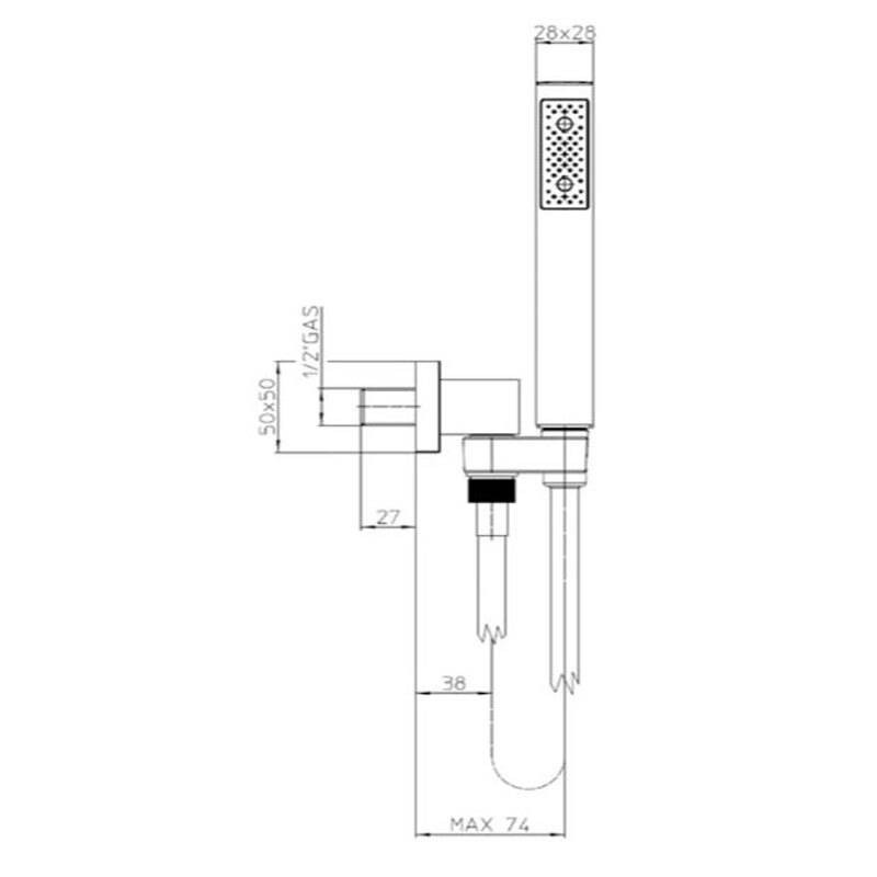 • Duplex doccia Cube, supporto orientabile quadro con presa acqua - flessibile doppia aggraffatura 150 cm