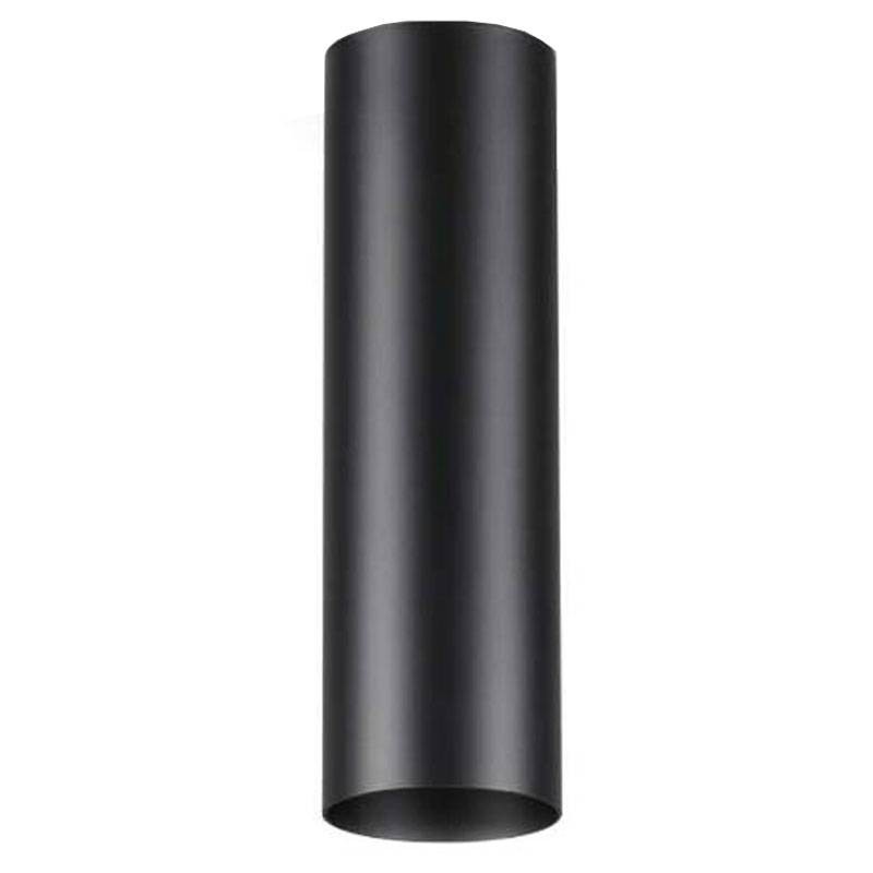 Base di fissaggio in alluminio tornito. Diffusore cilindrico in metallo verniciato a polveri nero.