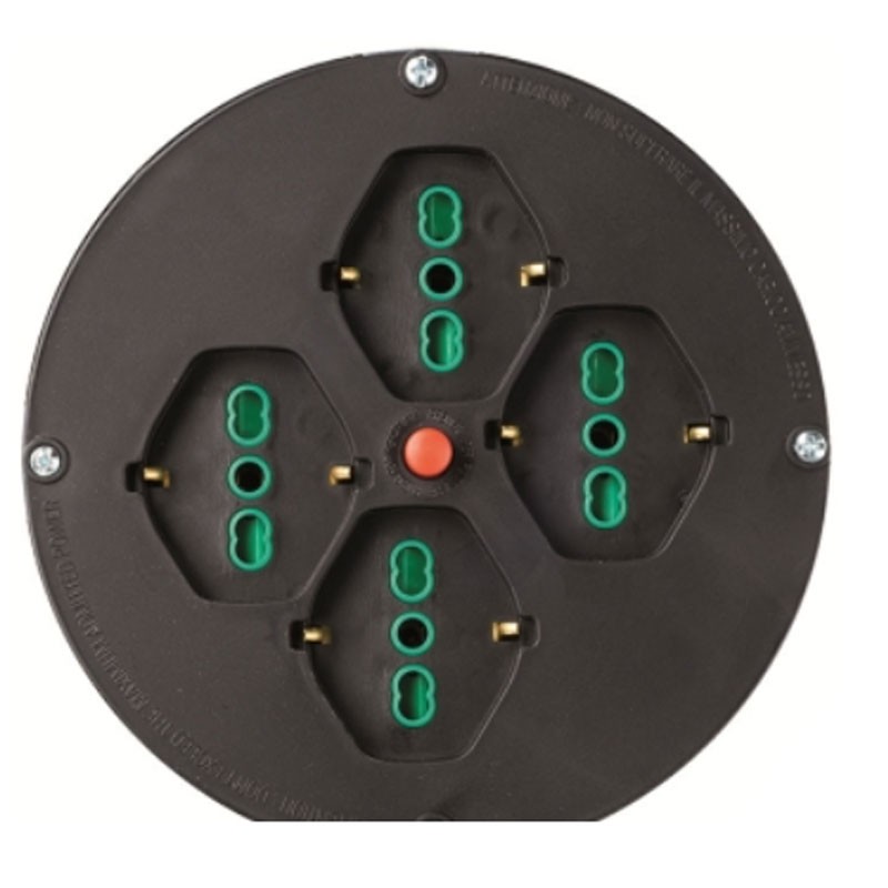 Disco di ricambio Fanton cablato Ø 145 mm. per avvolgicavo, con 4 prese bipasso italo/tedesche 2P+T 16A, flangia adattatore disco Ø 205 mm, con disgiuntore.