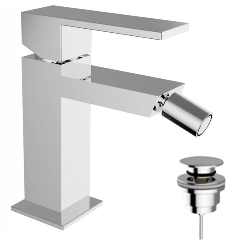 Miscelatore per bidet Teorema serie Pillar con scarico automatico (piletta) click clack e flessibili compresi: