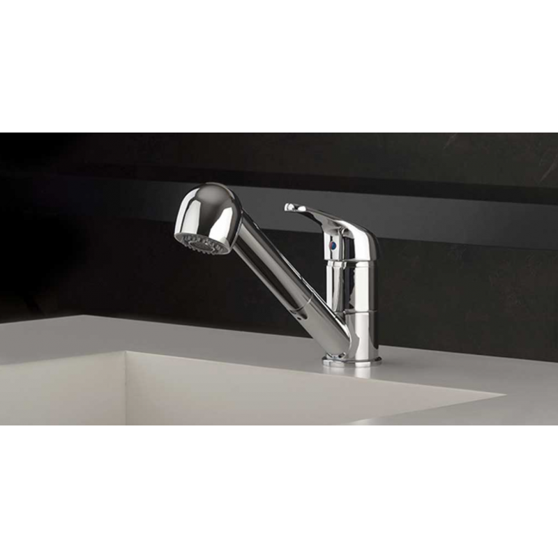 Miscelatore monoforo/monocomando per lavello Paini Pilot, doccetta estraibile bassa pressione, cromato, colore dei flessibili grigio.
