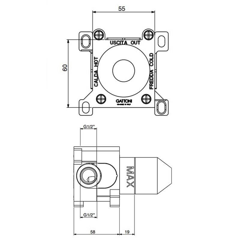 Corpo Incasso Universale Gattoni per Miscelatore Doccia CIRCLE TWO è la soluzione ideale per l'installazione di miscelatori doccia meccanici. Compatibile con diverse configurazioni, offre un'installazione semplice e sicura grazie alla sua struttura universale, con le seguenti caratteristiche: