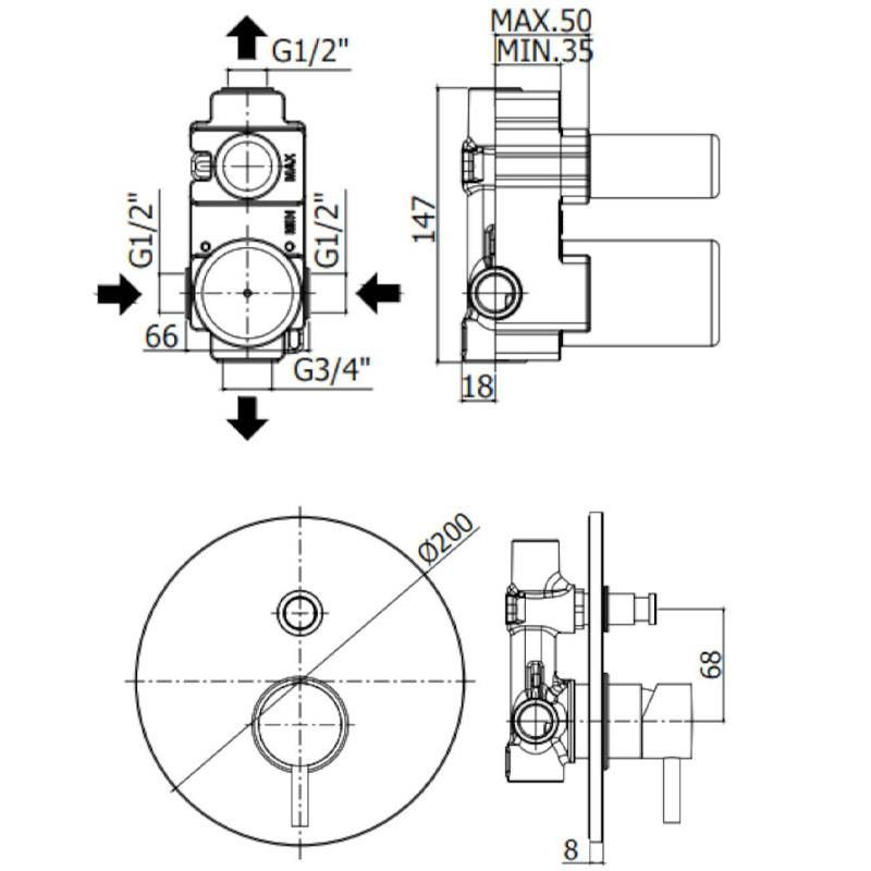 Miscelatore ad incasso per doccia Paffoni Light con deviatore oro spazzolato con le seguenti caratteristiche: