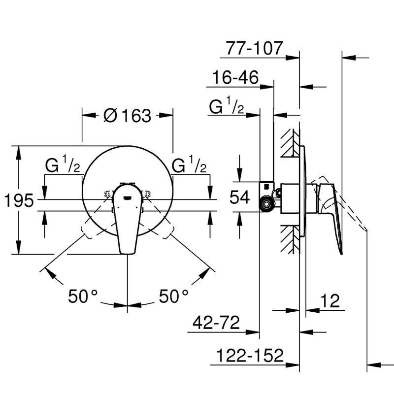 - Composto da: parte esterna - leva in metallo - corpo incasso - cartuccia a dischi ceramici GROHE Long-Life da 46 mm