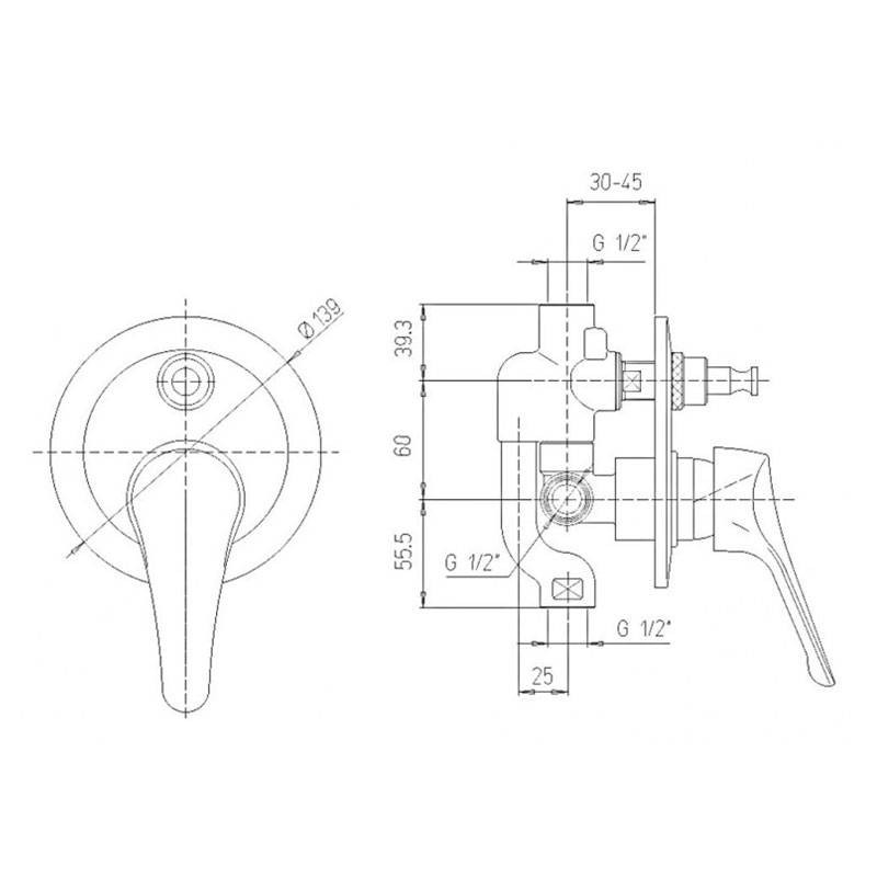 Miscelatore per doccia Paini Pilot con le seguenti caratteristiche:
