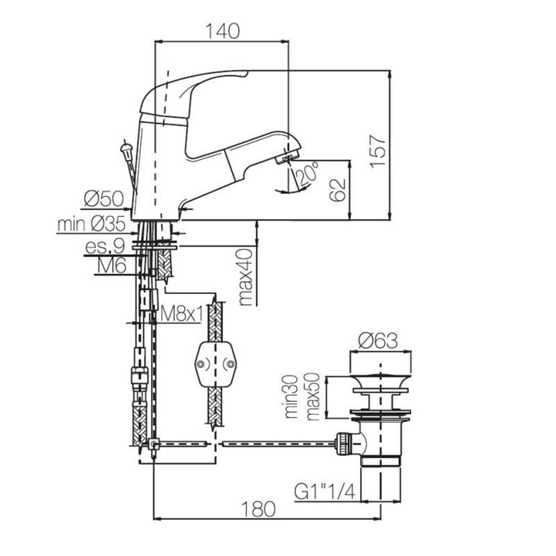 1 piletta, 2 tubi flessibili, e accessori per il montaggio inclusi nella confezione.