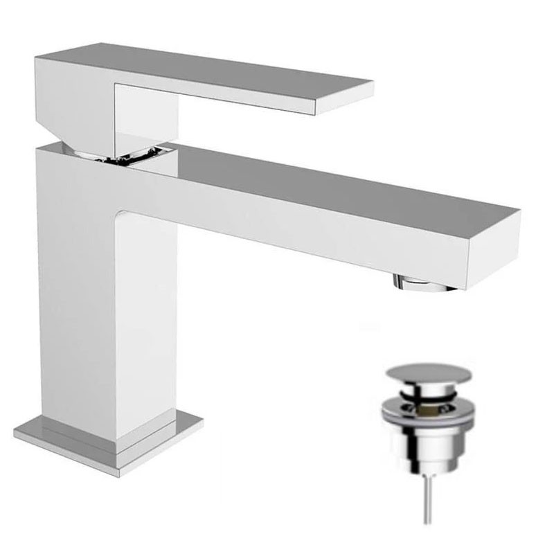 Miscelatore per lavabo Teorema WTS Serie Pillar con scarico automatico 3/8 pollici, versione cromato: