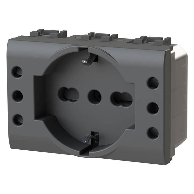 Presa 4Box P503 compatibile con la serie Bticino LivingLight colore Antracite composta da 1 schuko, 2 prese 10A e 1 presa 10/16 A.