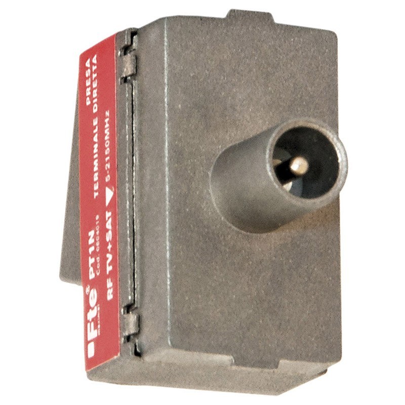 Presa terminale TV con connettore IEC maschio, conforme alla norma EN 50083-4.
