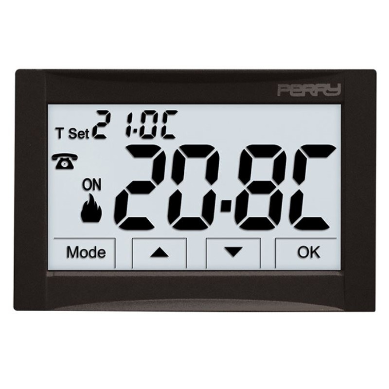 Termostato digitale ad incasso Perry serie Moon con Touch Screen, ideale per il controllo preciso della temperatura in ambienti residenziali e commerciali. Progettato per montaggio ad incasso, offre funzioni avanzate come modalità antigelo, retroilluminazione temporizzata e comando telefonico, con le seguenti caratteristiche: