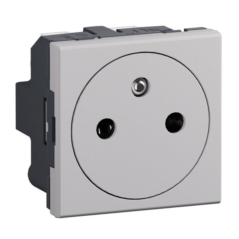 Presa corrente flat Bticino MatixGO JG4142AF grigia 2 moduli, standard franco/belga 2P+T 16A 250Vac: design a filo che rientra con la spina inserita, alveoli schermati e morsetti automatici per un'installazione rapida e sicura.