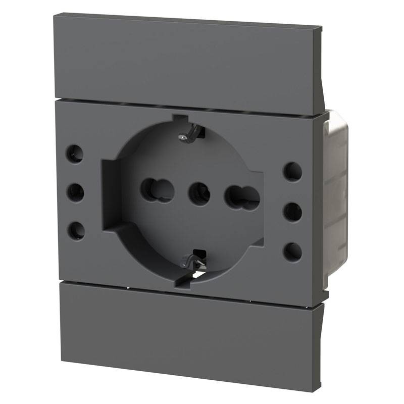 Presa 4Box P503 compatibile con la serie Bticino LivingNow Nera composta da 1 schuko, 2 prese 10A e 1 presa 10/16 A.