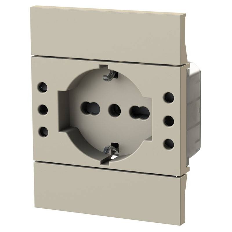 Presa 4Box P503 compatibile con la serie Bticino LivingNow Sabbia composta da 1 schuko, 2 prese 10A e 1 presa 10/16 A.