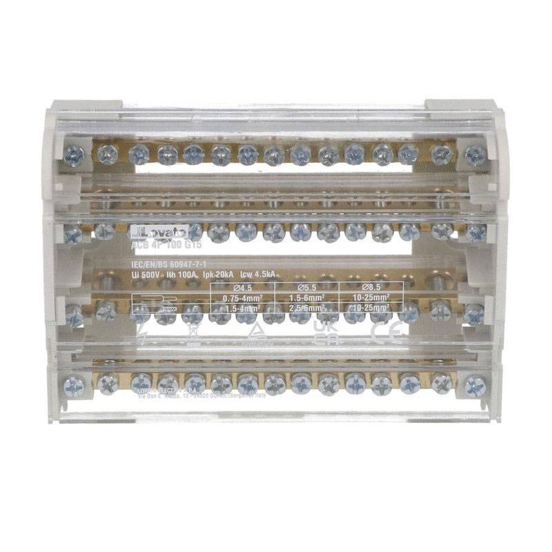 Ripartitore di potenza Lovato 100A 4P 15 terminali ACB4P100G15