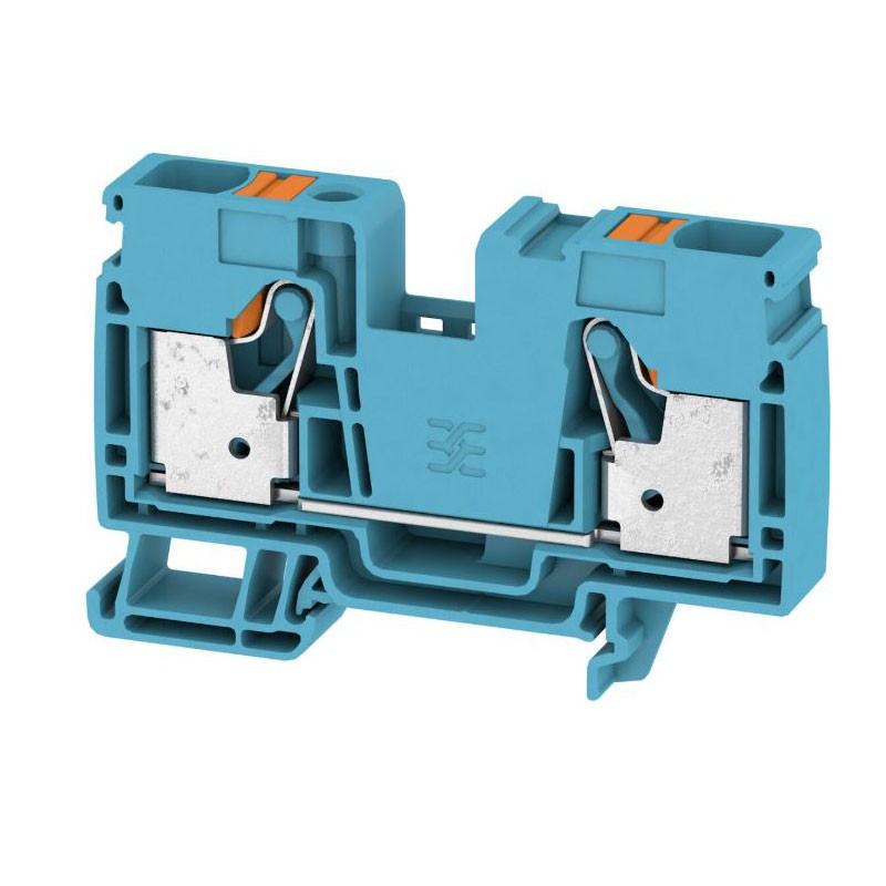 Morsetto passante Weidmüller A2C 16 PE Push-In da 16 mmq, colore blu, per guida DIN TS35, conforme IEC 60947-7-1: