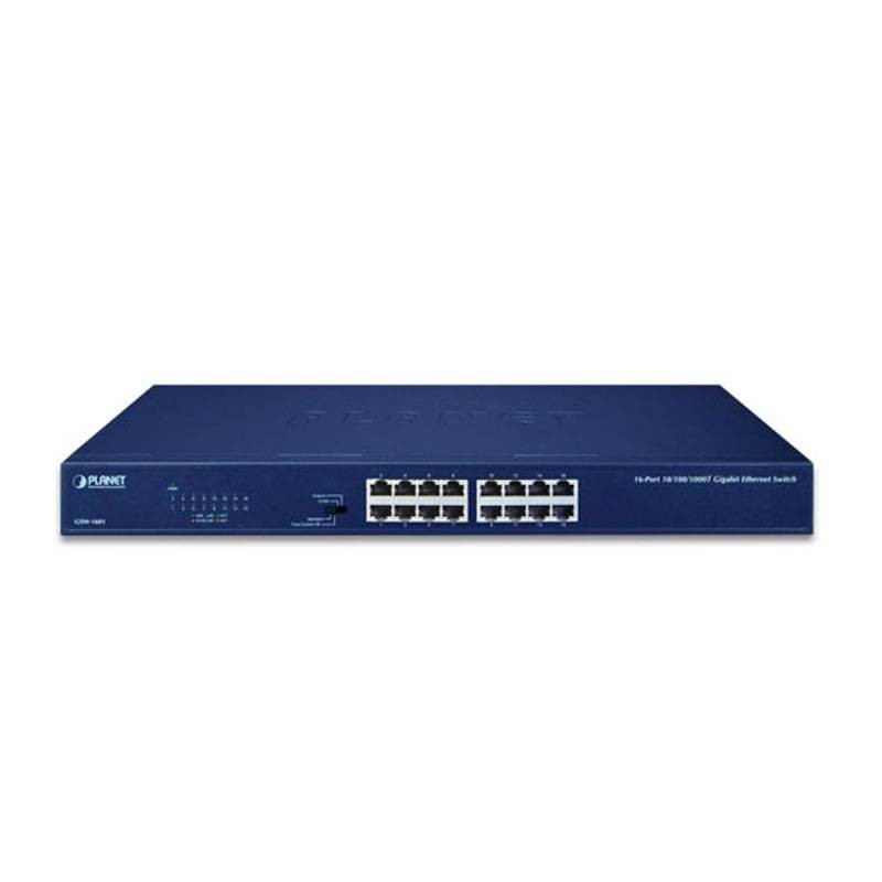 Lo switch Gigabit Ethernet PLANET GSW-1601 fornisce 16 porte RJ45 10/100/1000Mbps per la connettività di rete ad alta velocità. Può identificare e determinare automaticamente la velocità di trasmissione corretta e la modalità half/full duplex dei dispositivi collegati con le sue 16 porte Gigabit che supportano la funzione di frame jumbo 9K.