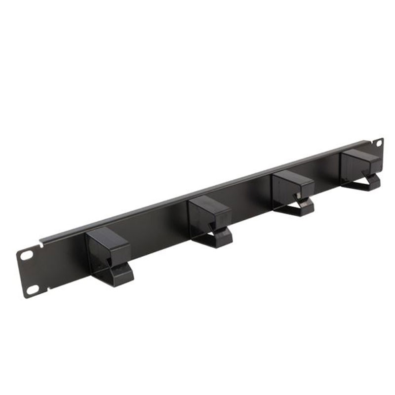 Pannello passacavi Item rack19”, completo di 4 anelli con altezza 40 mm e 80 mm, in lamiera di acciaio 15/10 1 unità, colore nero. Viti e dadi a gabbia esclusi.