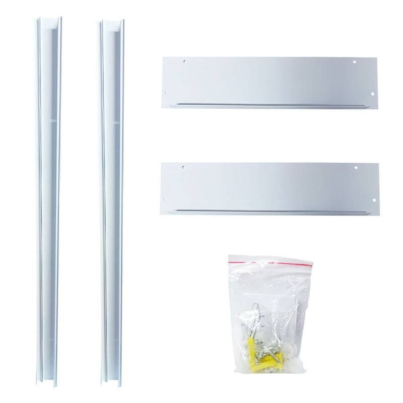 Struttura in alluminio verniciato bianco goffrato per installazione a plafone. Sistema componibile con viti e tappi coprivite.
