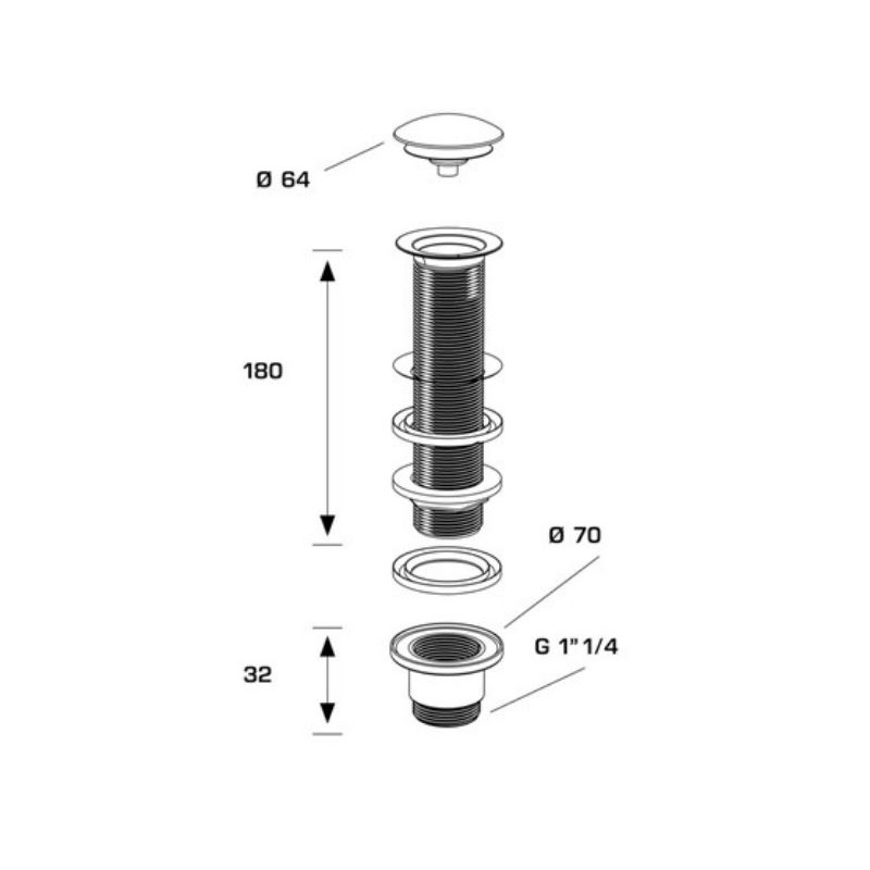- Corpo piletta Extra Long, per mobili bagno con top molto spessi
