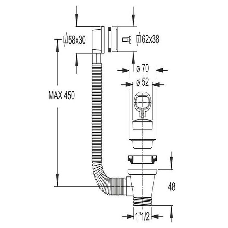 - Attacco piletta: 1 pollice 1/2