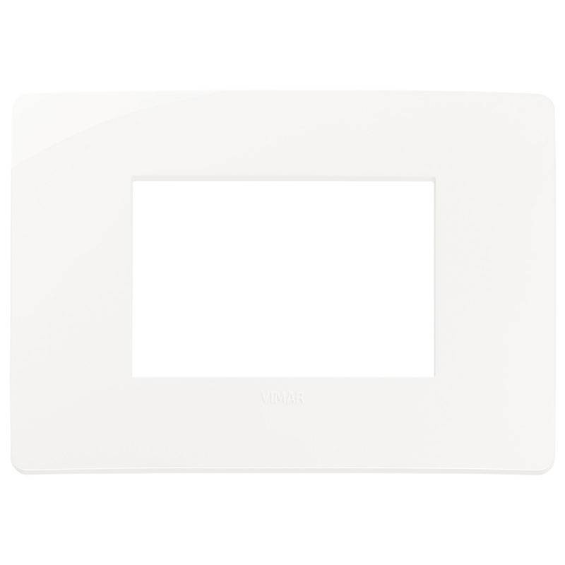 Placca Vimar Plana Up 3 moduli bianca 14653U.01 in tecnopolimero. Design moderno, fissaggio con viti su supporto Plana 14613 3M, piena compatibilità con tutta la serie Plana.