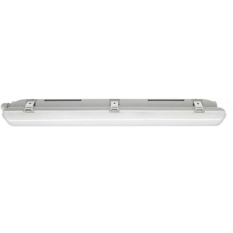 Con una lunghezza compatta di 607 mm, la plafoniera Ledinaire WT065C è progettata per un'installazione facile su guida DIN o altre superfici. Grazie al connettore a pressione a 3 poli, il cablaggio è rapido e sicuro. L'apparecchio è inoltre conforme agli standard CE e RoHS, garantendo sicurezza e sostenibilità.