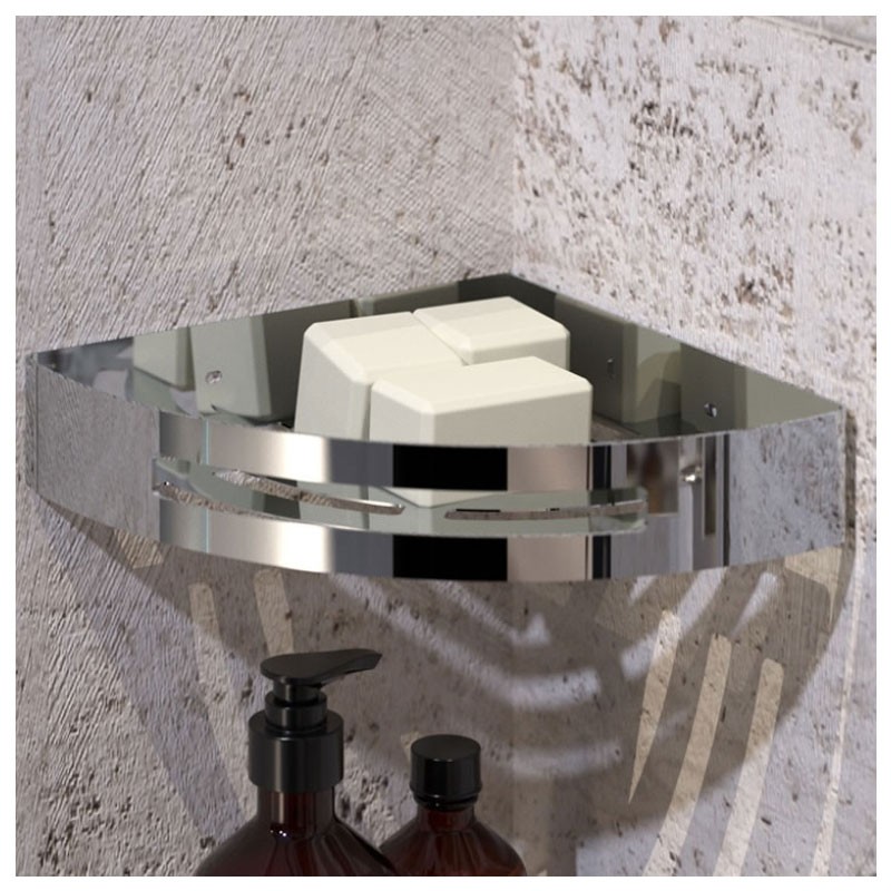 Portasaponi per doccia Gedy Poseidon angolare in acciaio inox AISI 304 e ABS, modello cromato lucido, dimensioni: 19,8 cm x 19,8 cm x 7,2 cm.