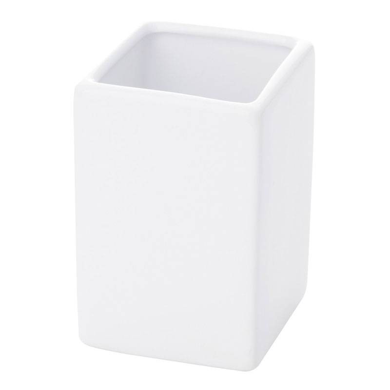 Portaspazzolino d'appoggio Gedy Verbena colore bianco, realizzato in ceramica, dimensioni 6,5x6,5x10cm.