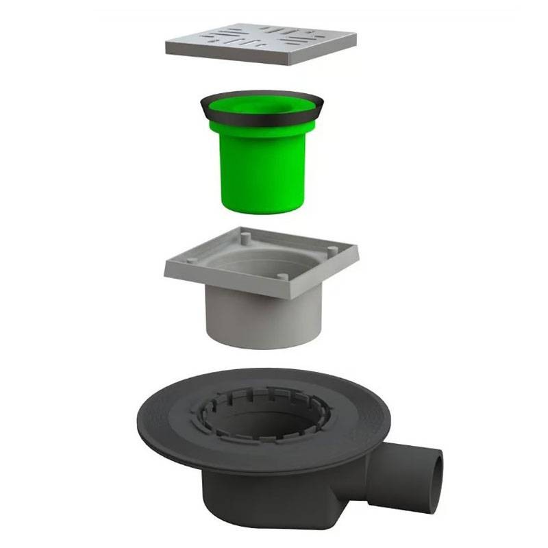 Pozzetto con sifone estraibile Bonomini da pavimento con griglia e manichetta regolabili, con le seguenti caratteristiche:
