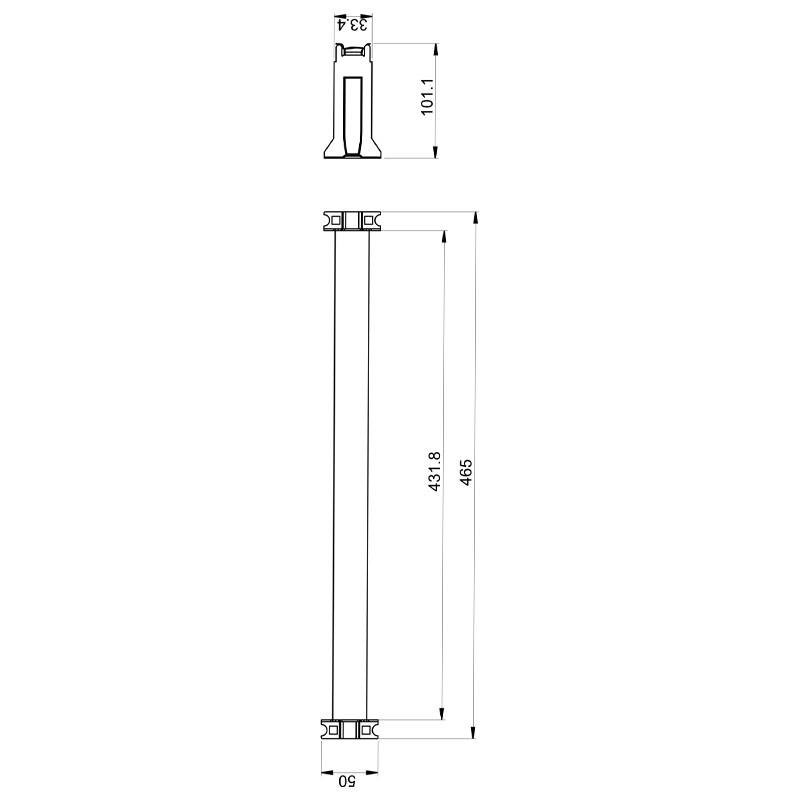 - Dimensioni: altezza 50 mm - larghezza 488 mm - profondità 102 mm