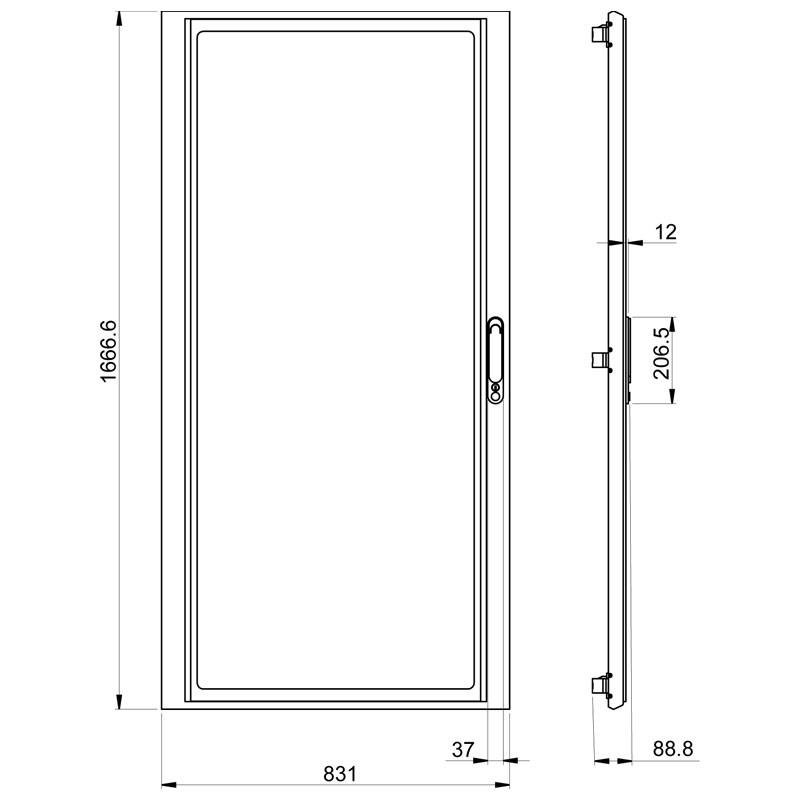Porta trasparente Schneider PrismaSet G W850 33M IP30 con le seguenti caratteristiche: