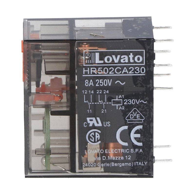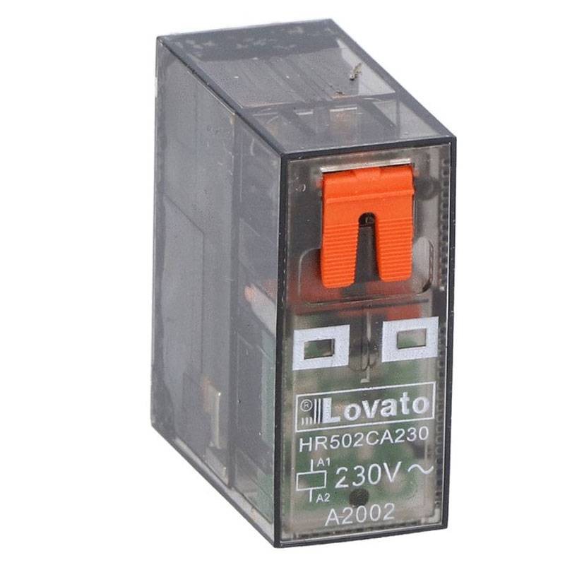 Mini Relè Lovato 8A 2 scambi 230V AC con indicatore Led HR502CA230