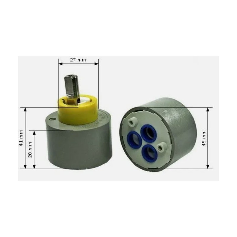 La cartuccia rubinetto miscelatore ha un involucro esterno realizzato in materiale plastico solido e resistente, mentre la struttura interna è composta da due dischi ceramici che permettono la fuoriuscita e la miscelazione dell'acqua senza presentare fastidiosi perdite durante il corso dell'utilizzo.