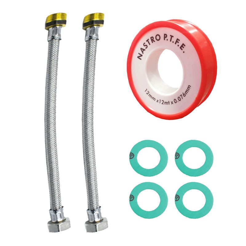 - 2 Tubi flessibili materiale Inox, attacchi Maschio 1/2" Femmina 1/2" lunghezza flessibile 30cm, con guarnizione inserita