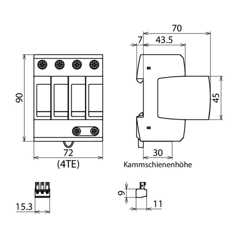 Limitatore di sovratensione Dehn DGMTT ACI275FM modulare per sistemi di rete TT e TN-S (circuito 3+1):