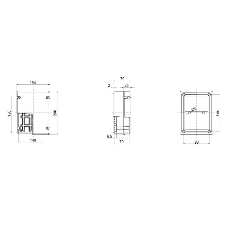 - Dimensioni interne BxHxP (mm): 190X140X70