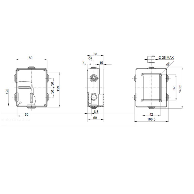 - Dimensioni interne BxHxP 120x80x50 mm