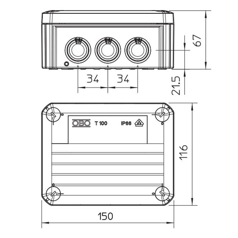 Scatola di derivazione Obo da esterno T100 con le seguenti caratteristiche: