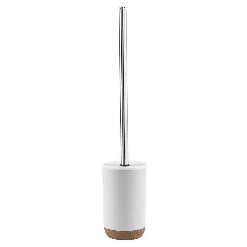 Porta scopino d'appoggio Gedy Ilary colore bianco, in ceramica e base di sughero, dimensioni diametro 8,8x46,5cm.
