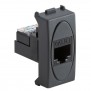 Presa dati RJ45 UTP categoria 5E plug 8/8 Master Modo, 1 modulo colore grigio. Essa appartiene alla categoria 5E e permette di gestire una velocità massima di 1000 Mbps (Gigabit), e sono in grado di ospitare cavi ethernet. Il loro utilizzo è essenziale per collegare il router al computer permettendo di connettersi con l’ADSL di casa.