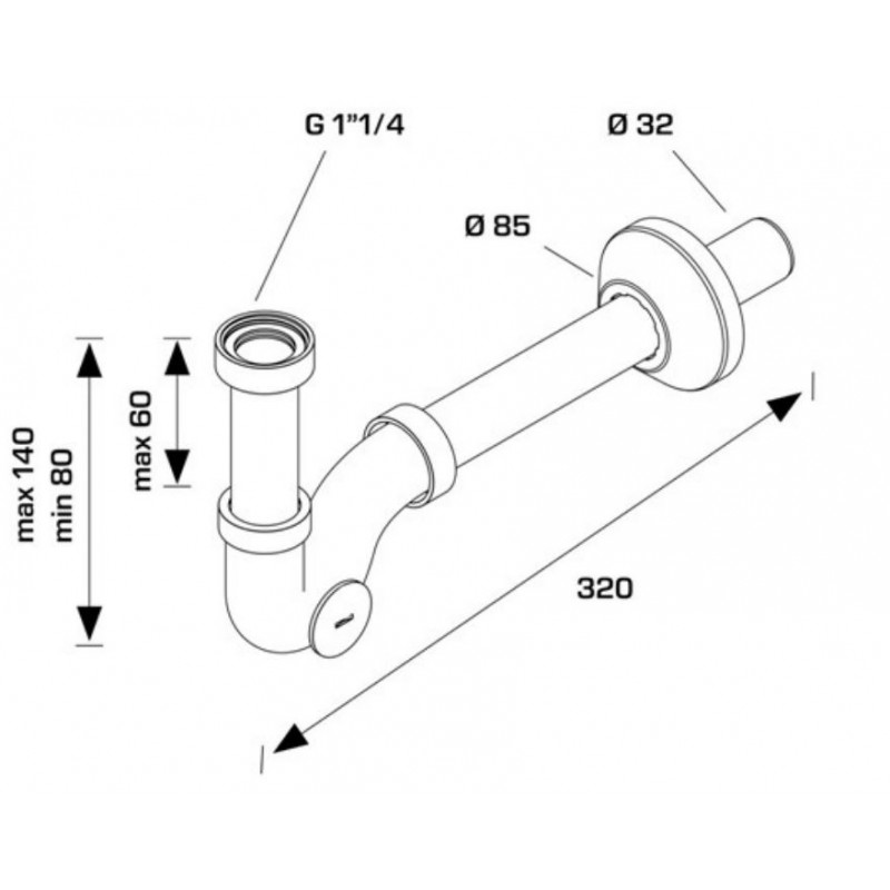 • Scarico: ø 32x250 mm