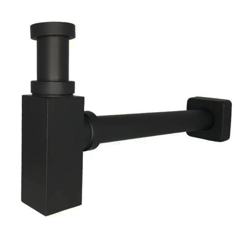 Sifone scarico lavabo quadrato Sphera, colore nero opaco con guarnizione di colore nero.
