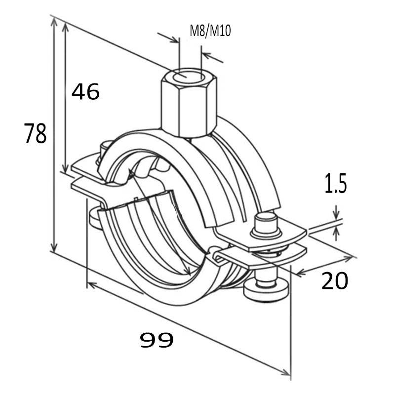 Grazie al sistema a doppia vite, il collare si adatta con precisione al diametro esterno del tubo, semplificando l'installazione. La filettatura combinata M8/M10 consente una maggiore flessibilità nel montaggio, adattandosi a diverse esigenze progettuali.
