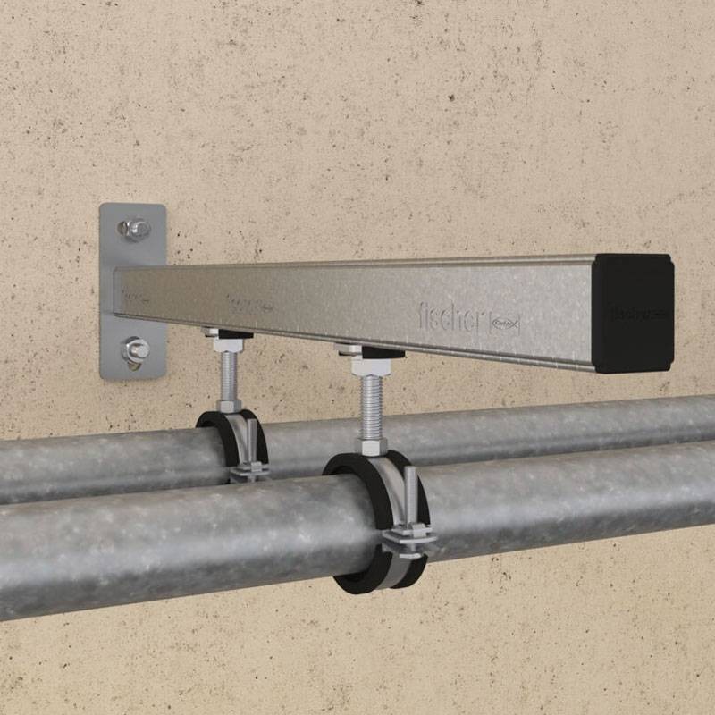 FHS Clix è idonea per la connessione di collari per tubazioni ai binari di montaggio. La vite può essere inserita in qualsiasi punto della rotaia, anche per applicazioni in retrofit.