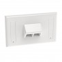 La piastra frontale NetKey accetta due moduli keystone. La piastra frontale è a banda singola e si monta orizzontalmente su un'apertura a banda singola standard NEMA. La piastra frontale include una tasca per etichetta per una facile identificazione ed è di colore bianco artico.