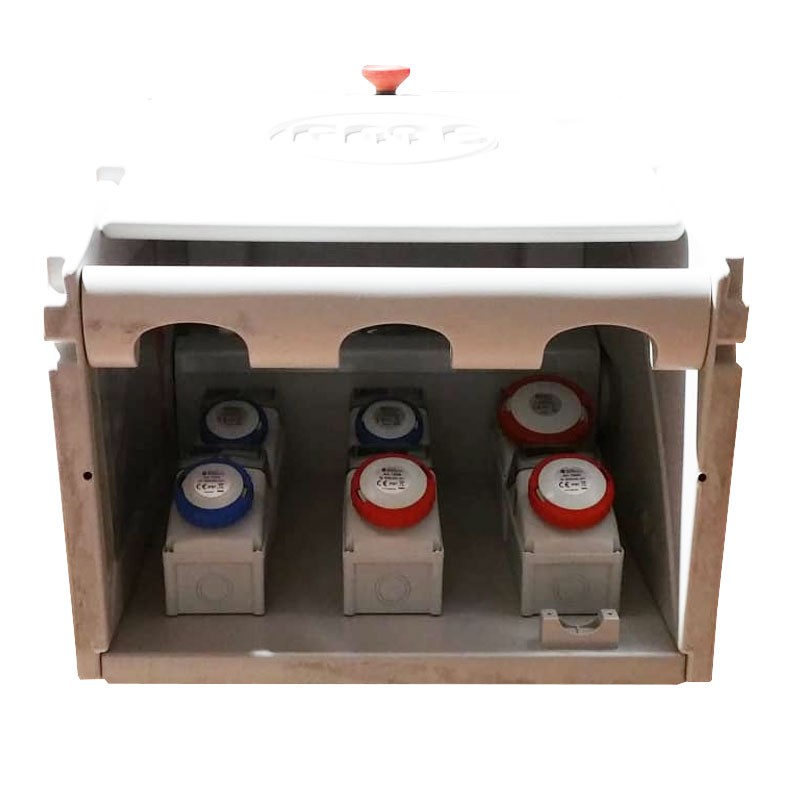 - 3 Prese 2P+T 16A 200-250V 6h IP67 interbloccate con fusibili