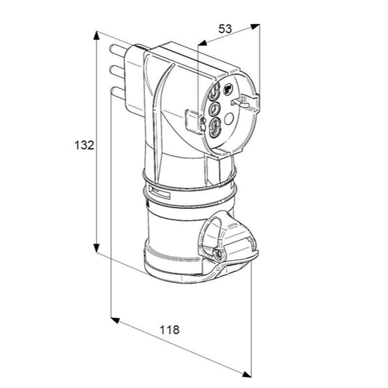 - Composto da: 1 spina 2P+T 16A 250V Standard Italiano - 1 presa 2P+T 10/16A 250V Bipasso Standard Italiano/Tedesco - 1 spina 2P+T 16A 220V CEE IP44