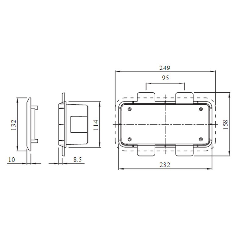 Cassetta con cornice Gewiss per prese fisse verticali, ideale per pareti mobili e cartongesso.