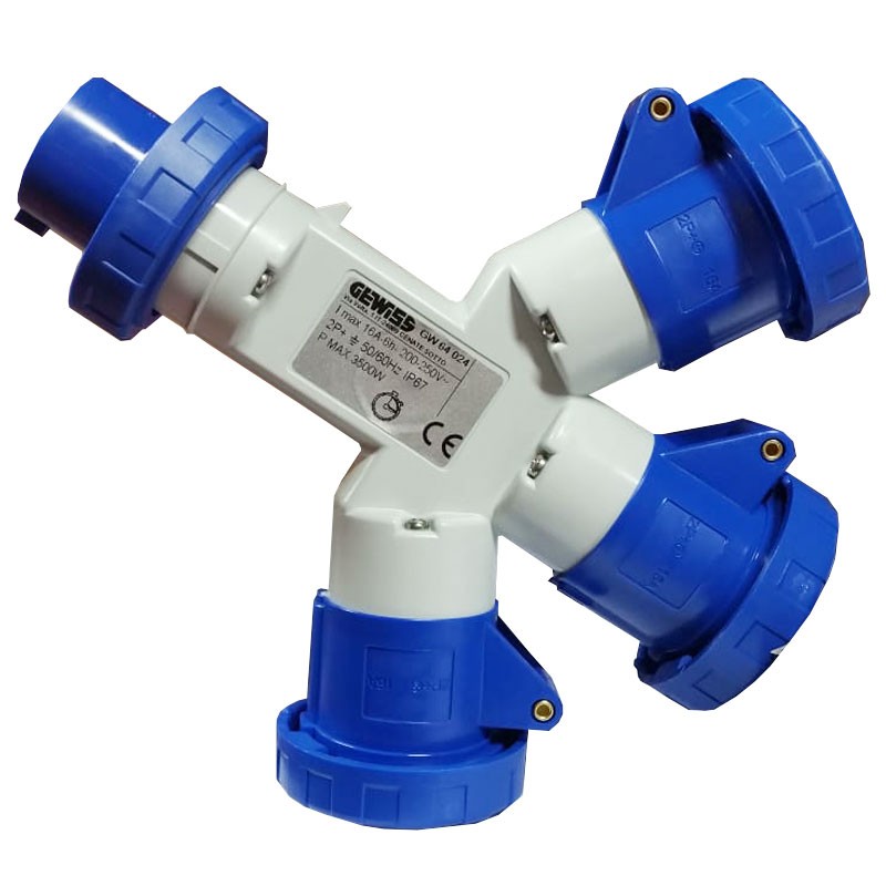 Moltiplicatore Gewiss triplo 2P+T 16A IP67 3 prese blu 230V GW64024